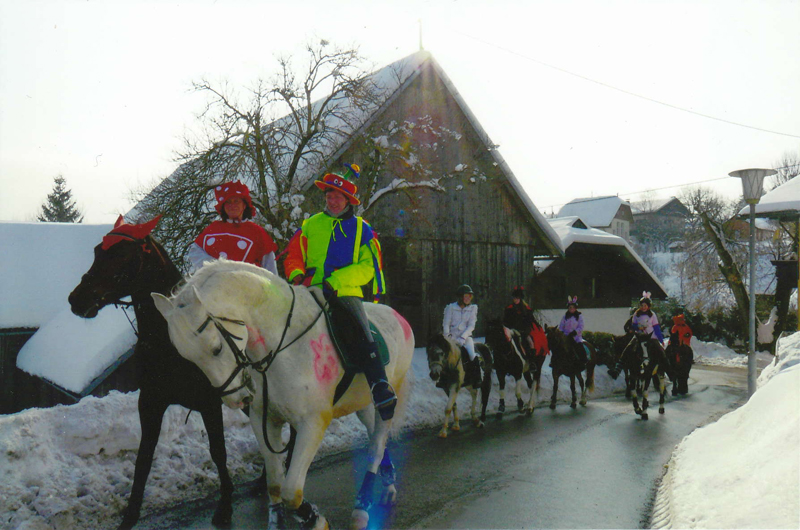 veranstaltet der Reitstall Ritte bei denen Verkleiden Pflicht ist. Wer kein eigenes Pferd besitzt, kann eines mieten. Entweder als Engel oder Nikolo zu Weihnachten oder fantasievoll und bunt zu Fasching verkleidet, geht es in 2 Stunden nach Velden und auf einem Rundritt wieder zurück zum Stall.